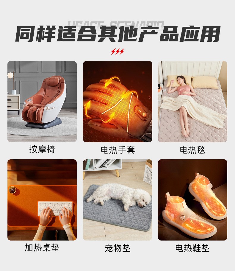 服装碳纤维加热片如何在一拖三和一拖五中正确选择,市场的电热服装多采用金属加热片的原理