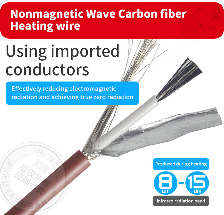 Non-magnetic wave carbon fiber heating wire, referred to as non-magnetic carbon fiber heating wire, also known as jade mattress special carbon fiber heating wire, use import carbon fiber as heating conductor, silicone rubber as insulation layer, with <ω> as resistance unit, thickness unit